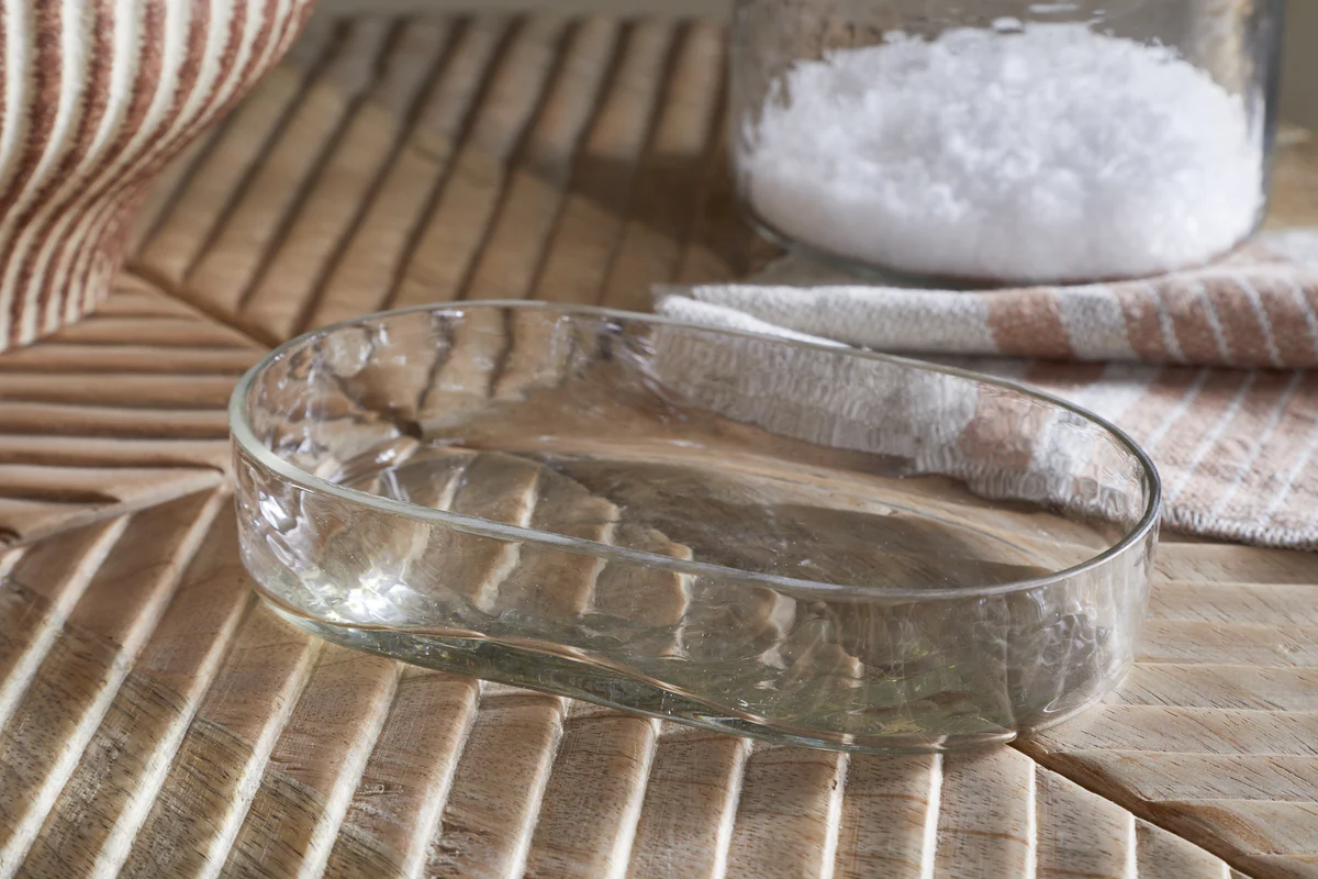 This elegant soap dish brings a calm, spa-like quality to your bathroom space. Made from clear recycled glass, its gently hammered surface gives a soft, organic texture that feels both modern and timeless. A simple, elevated essential that complements both classic and contemporary bathrooms.