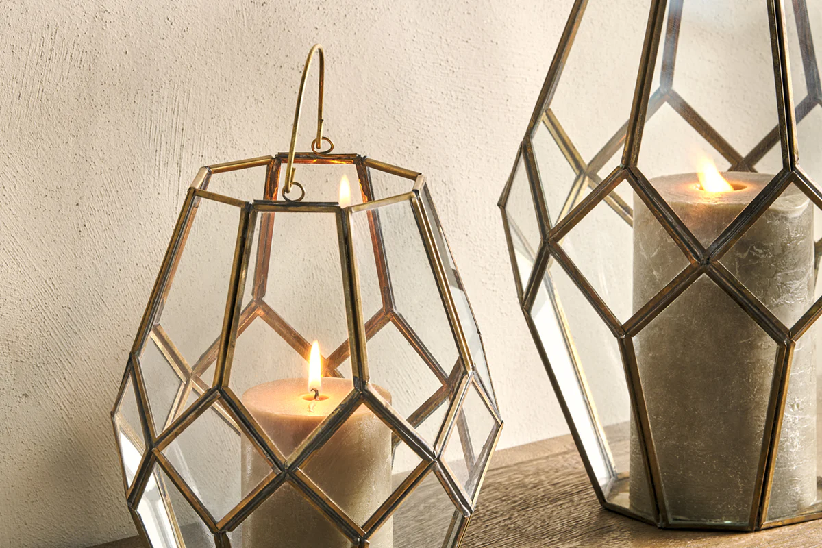 We love the asymmetric design of these brass lanterns. The rich coloured brass gives them an antique finish, each one is hand welded to fit the individual glass windows. This timeless lantern looks beautiful in any setting.